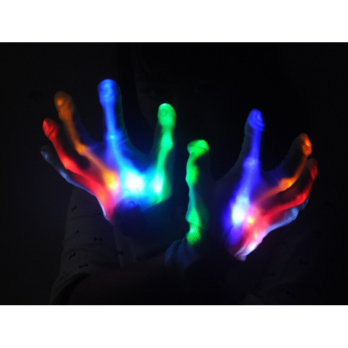 Les gants émettent de la lumière de différentes couleurs au bout des doigts.