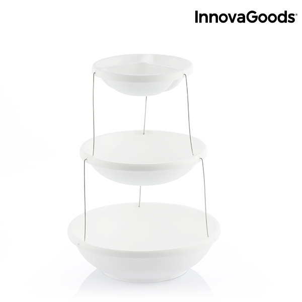 Gagner de la place à table et dans la cuisine avec les nouveaux et originaux bols pliants rotatifs InnovaGoods Kitchen Foodies ! Déplié, il a une forme de tour avec 3 bols reliés entre eux par une structure métallique. Il se déplie facilement en tournant et en tirant vers le haut. Il se plie également en toute facilité en tournant et en appuyant vers le bas. Idéal et très pratique pour servir les apéritifs à table.