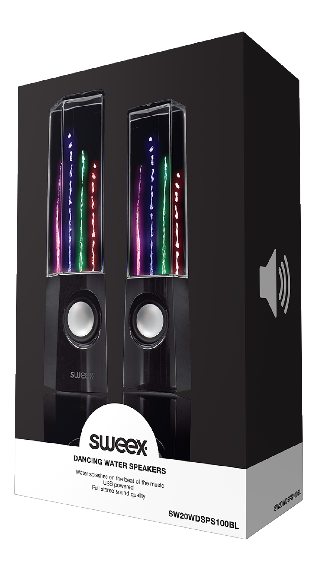 Le lot comprend 2 haut-parleurs de couleur noir avec jets d'eau.