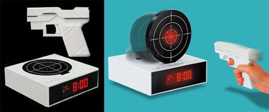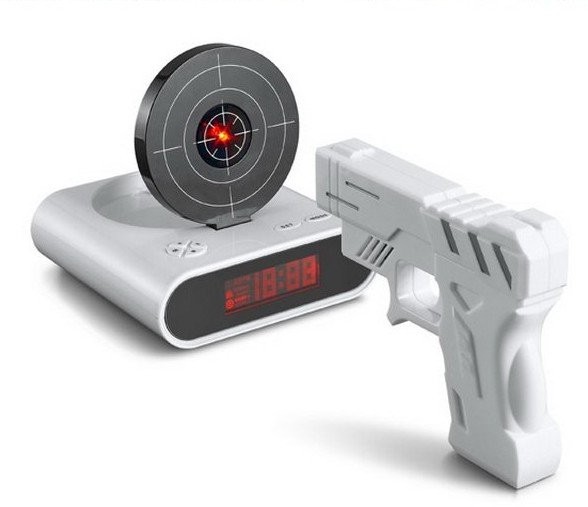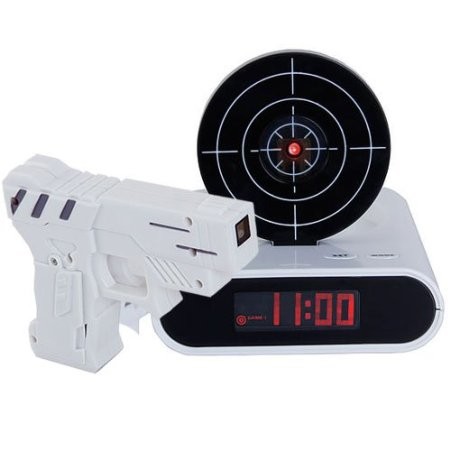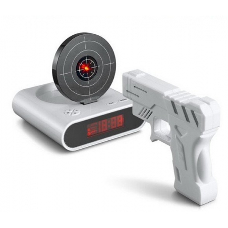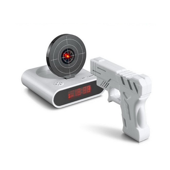 Endormez-vous avec le pistolet sous l'oreiller ou à proximité et dès que le réveil va sonner, vous devrez tirer avec le pistolet sur le centre de la cible pour l'arrêter !