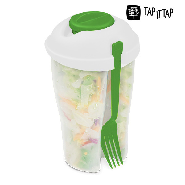 Grâce au shaker salade Tap It Tap, vous pouvez désormais préparer toutes vos salades préférées (salades méditerranéennes, de pâtes, de riz, de poulet, etc.) tout en préservant saveurs et vitamines ! Très pratique, ce récipient en plastique vous accompagnera facilement n'importe où, ce qui vous permettra de déguster vos salades maison en toute commodité. Avec Tap It Tap, plus d'excuses pour renoncer à une alimentation saine et équilibrée ! Dimensions approx. (diamètre x hauteur) : 11 x 19 cm. Capacité approx. : 1 l. Livré avec un petit récipient pour toutes vos sauces et vinaigrettes ainsi qu'une fourchette en plastique.