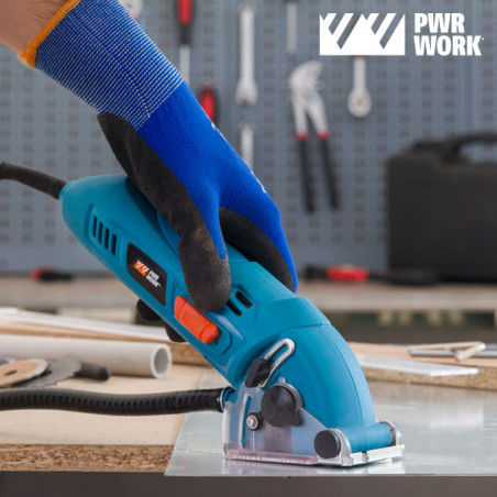 Si vous êtes bricoleur et que vous aimez réaliser vos propres créations avec différents matériaux, la scie circulaire compacte All·Materials Mini Saw PWR WORK est tout ce qu'il vous faut. Cette scie électrique vous aidera à perfectionner vos connaissances en bricolage avec précision et en toute sécurité grâce aux trois disques de découpe différents inclus (approx. Ø 54,8 x 11,1 mm), vous permettant de couper tout type de matériaux (carreaux grés, bois, plastique, ardoise, tôle ou métal).