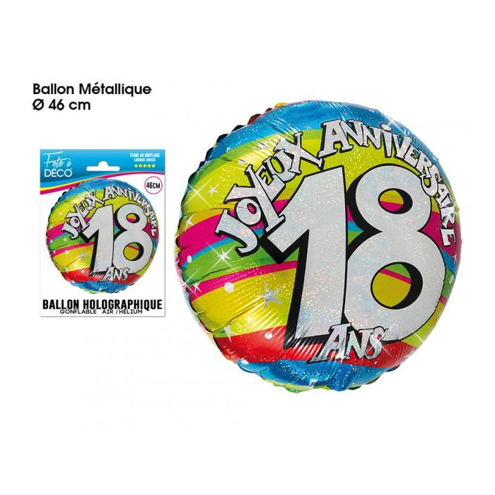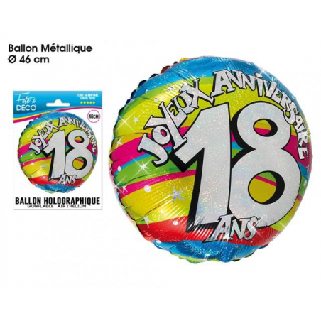Nous vous proposons ce ballon géant "JOYEUX ANNIVERSAIRE 18 ANS" de 46 cm de diamètre.