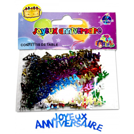 Les confettis "Joyeux Anniversaire" sont de plusieurs couleurs pour colorer votre table.