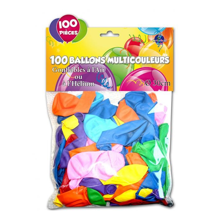 Le lot se compose de 100 ballons de baudruche multicolores.