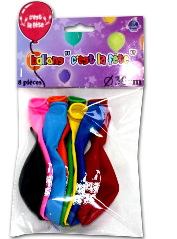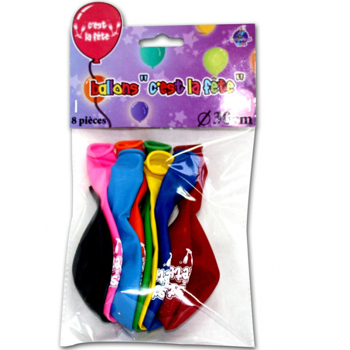 Nous vous proposons ce lot de 8 ballons "C'est la fête" de 30 cm de diamètre.