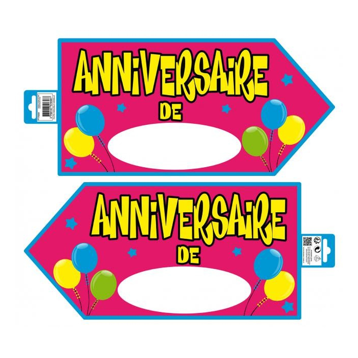 La flèche double face est marquée "Anniversaire de" avec un trou pour marquer le prénom.