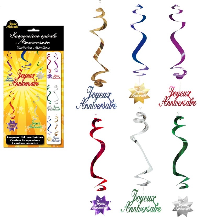 Les suspensions spirales "Joyeux anniversaire" sont originales et décoratives.