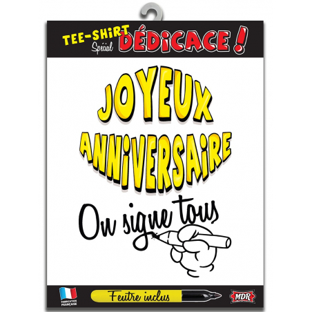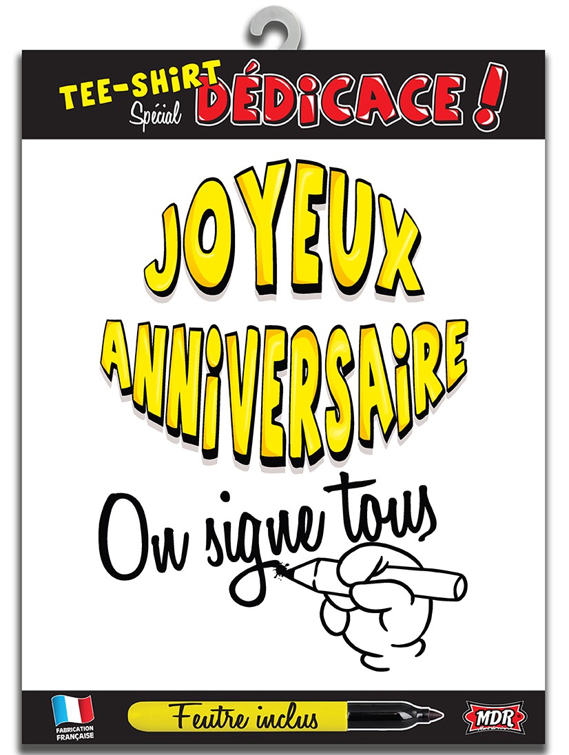 Le tee shirt "Joyeux Anniversaire" est accompagné d'un feutre pour que chacun laisse une dédicace.