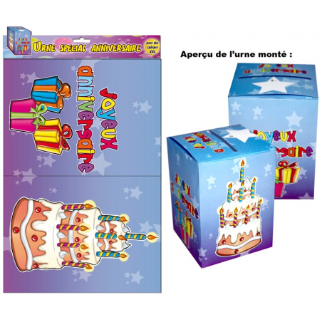 Urne d'anniversaire en carton marquée "Joyeux Anniversaire".