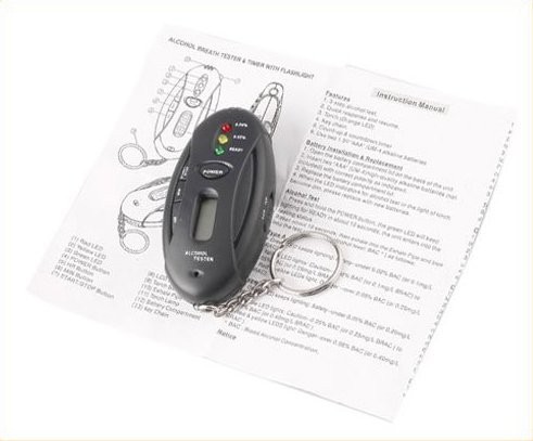En plus de sa fonction éthylotest, cet appareil possède une lumière intégrée, vous donne l'heure et possède un chronomètre.