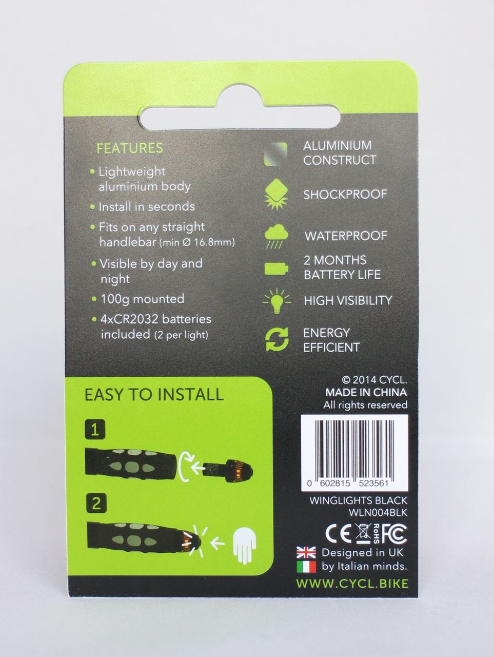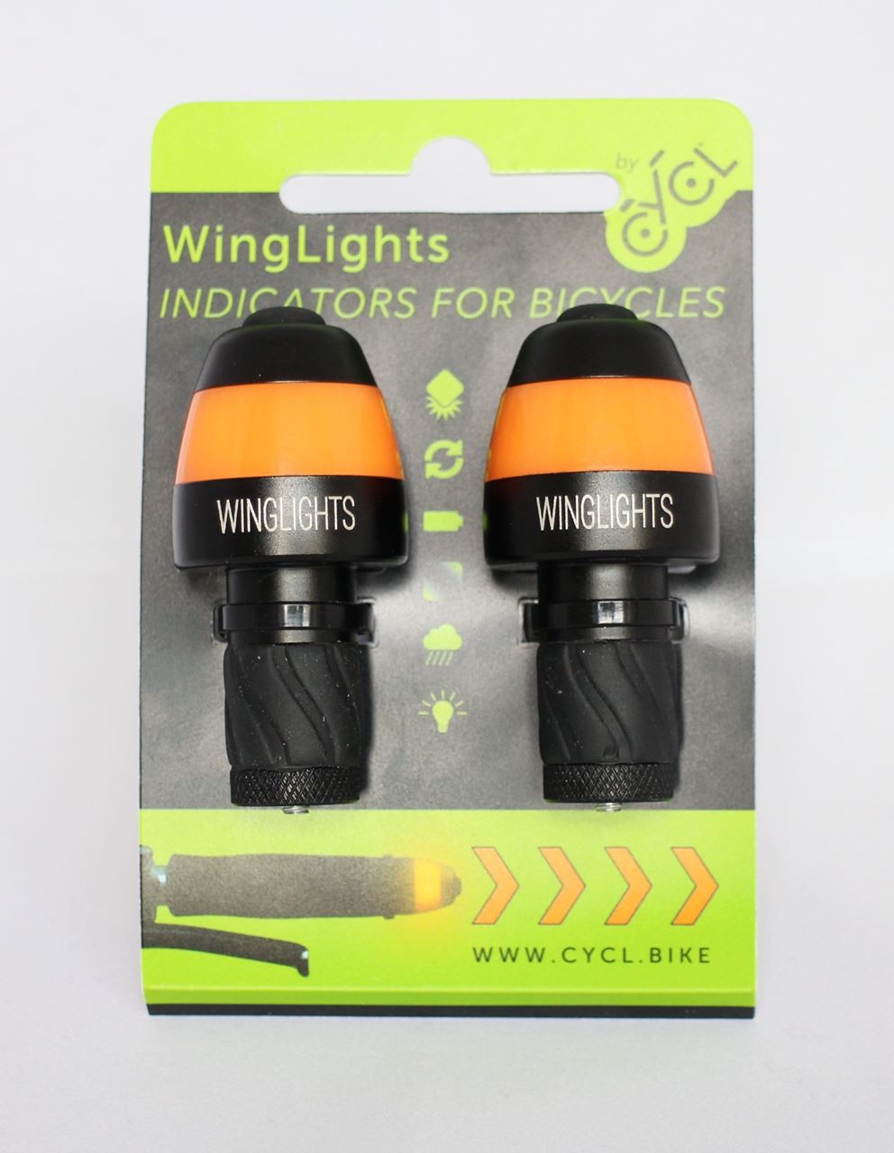 S'insérant directement aux extrémités du guidon, il suffit d'appuyer sur leur extrémité pour déclencher la lumière clignotante. Les clignotants pour vélo fonctionnent comme pour les voitures : même couleur et même fréquence. Evidemment, les clignotants WingLights fonctionnent par tous les temps, même sous la pluie.