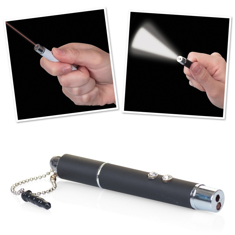 Ce porte-clés multifonction dispose d'un laser rouge intégré, d'une lampe torche LED et d'un stylet pour écran tactile fixés à vos clefs pour voir les serrures.