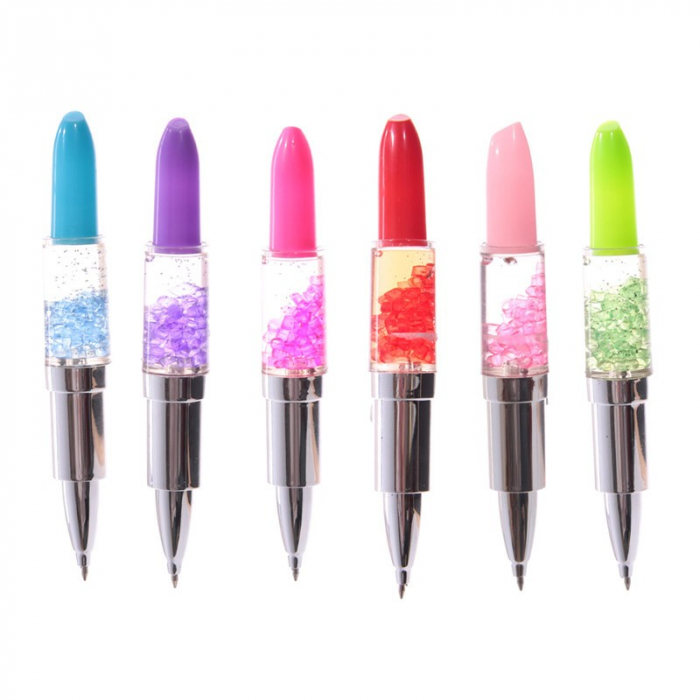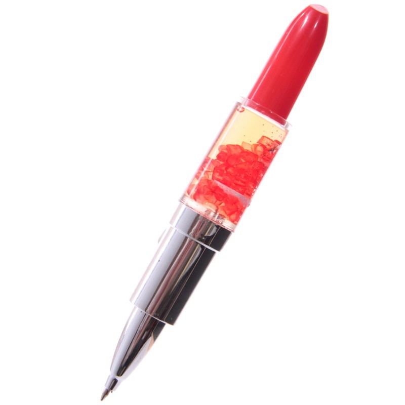 Stylo en forme de rouge à lèvres avec des paillettes et une lumière intégrée