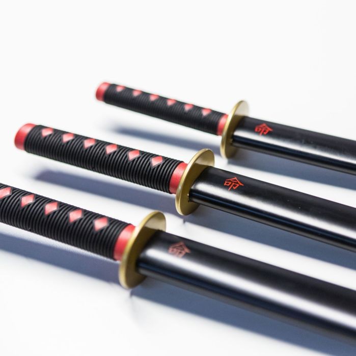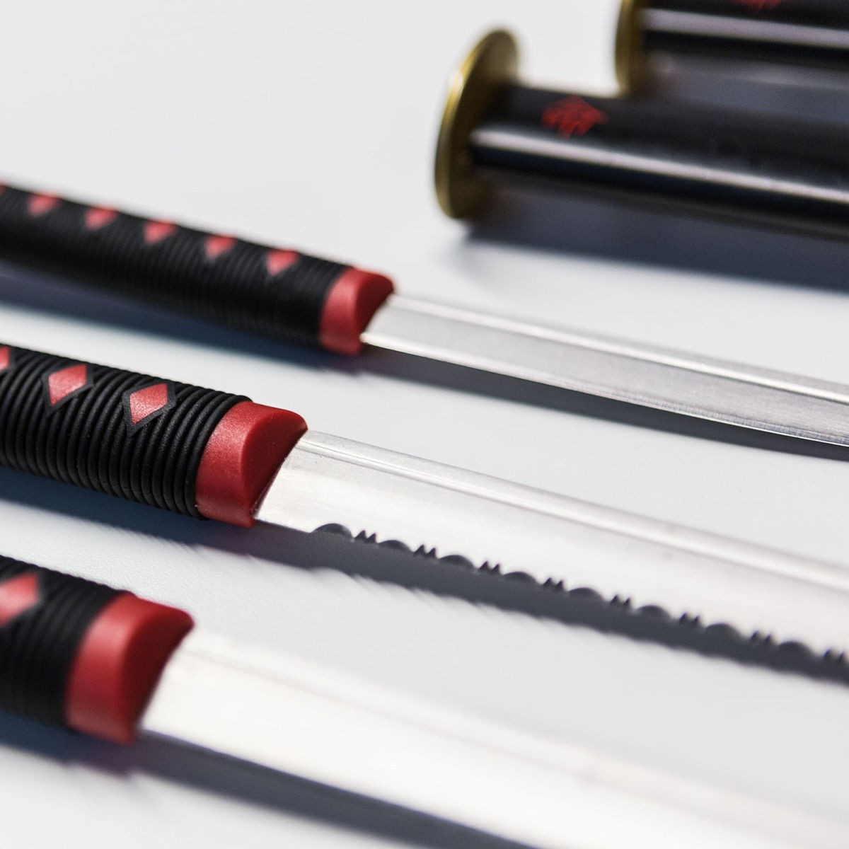 - Bloc à couteaux Ninja avec trois couteaux en forme de katanas.