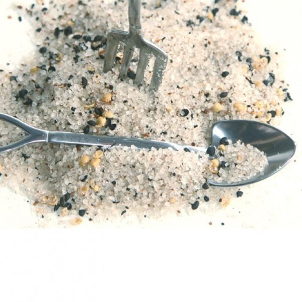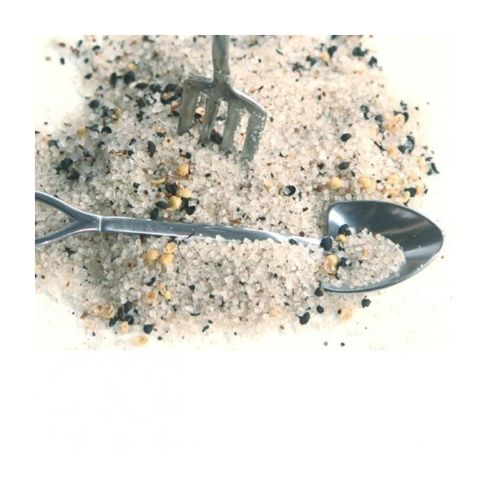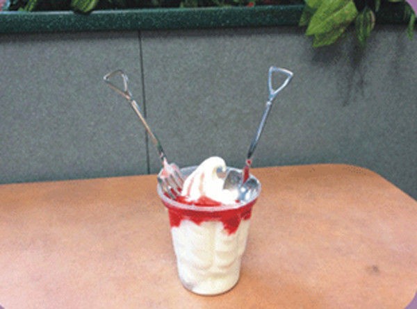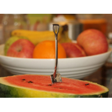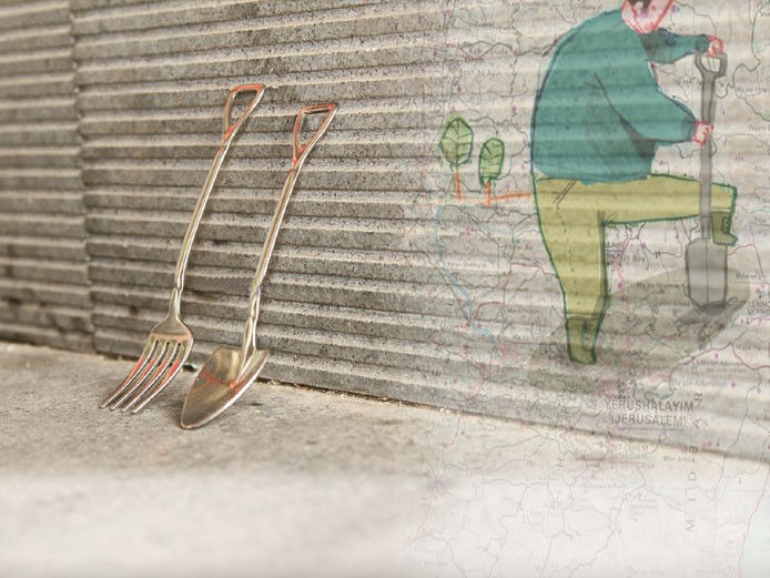 Les couverts humoristiques sont en forme de pelle et fourche de chantier.