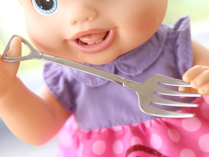 Couverts pour les doigts en matière plastique composés de 2 cuillères et 2 fourchettes sous blister.
