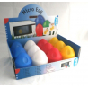 Le cuit-oeuf révolutionnaire existe en 4 coloris : rouge, jaune, blanc et bleu (envoyés aléatoirement).
