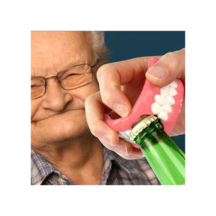 Nous vous proposons ce décapsuleur en forme de dentier.