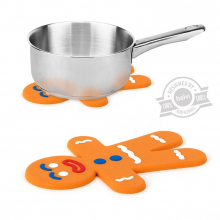 Le dessous de plat en silicone à la forme d'un bonhomme de pain d'épices, astucieux, il est magnétique pour tenir sur la casserole ou sur le frigo !