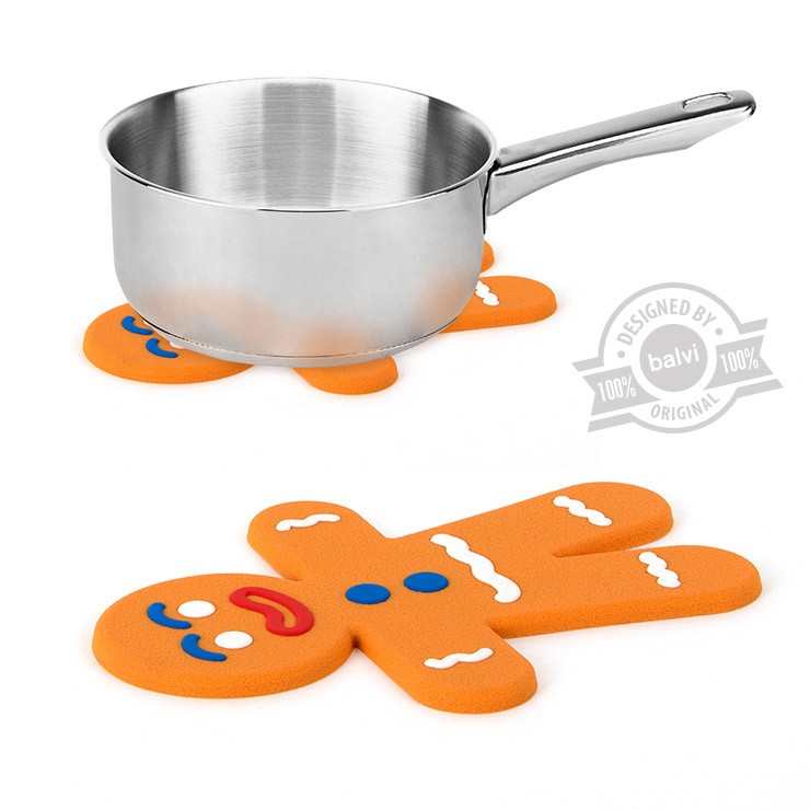 Original, le dessous de plat a la forme d'un bonhomme de pain d'épice.