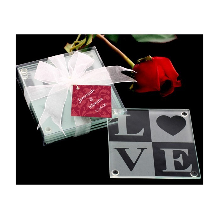 La boite cadeau se compose de 2 dessous de verres marqués "love".