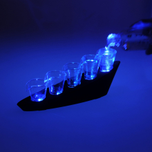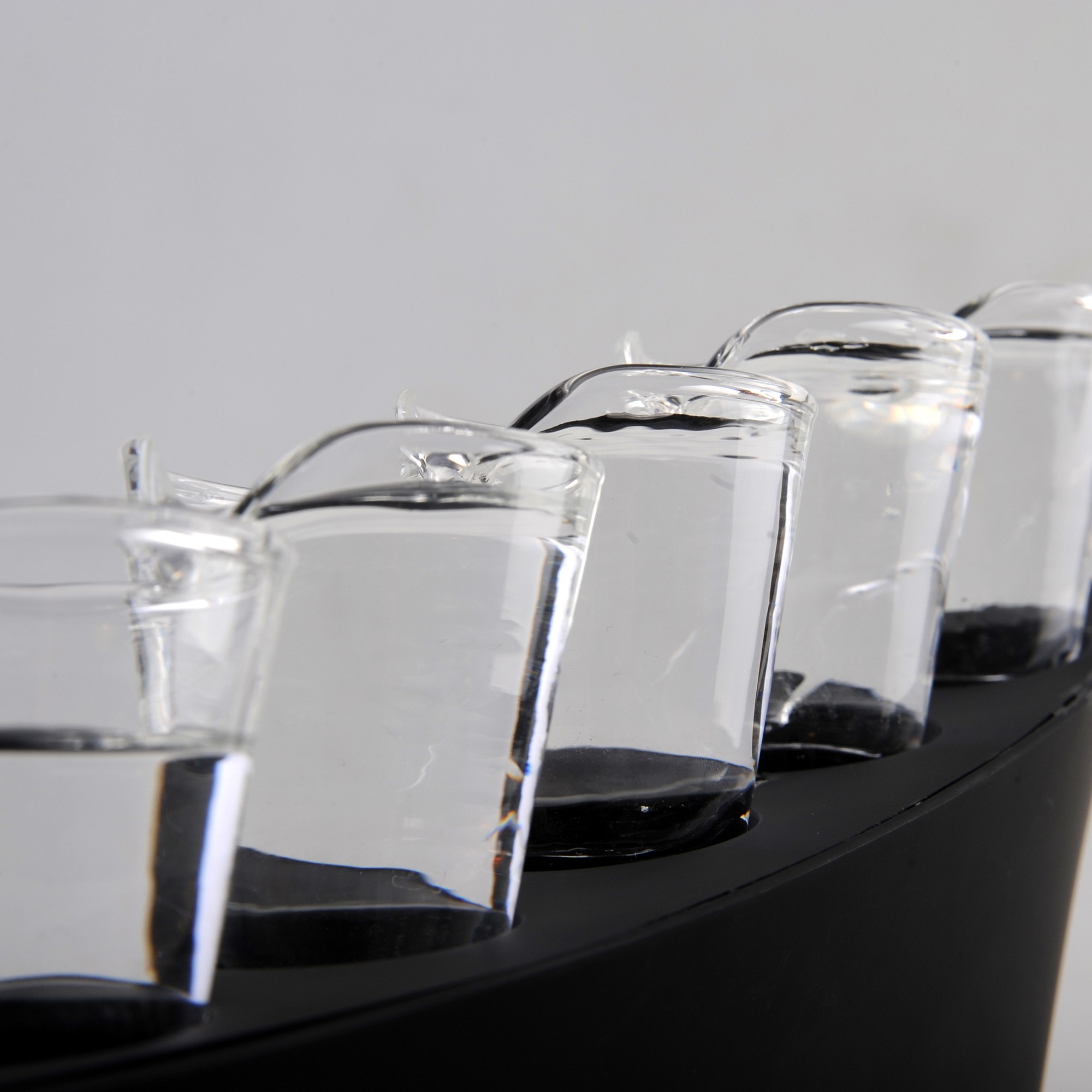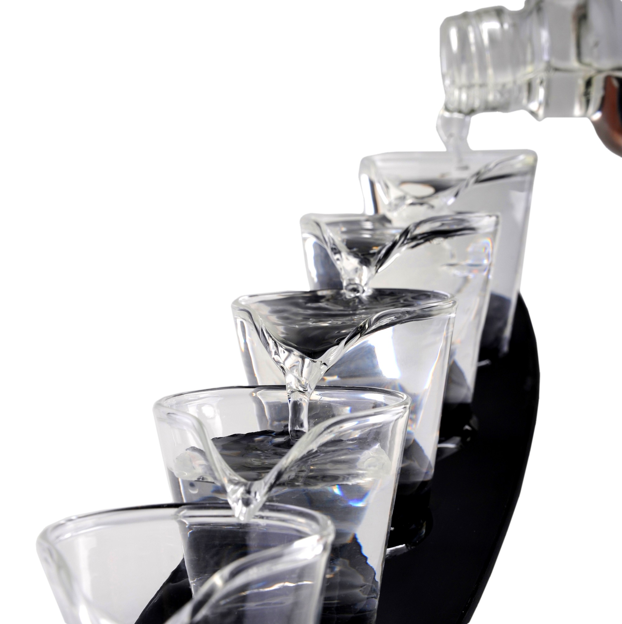 Lot de 5 verres shooter qui se renversent les uns dans les autres comme un jeu de dominos avec un socle lumineux pour éclairer cette superbe cascade de liquide.