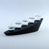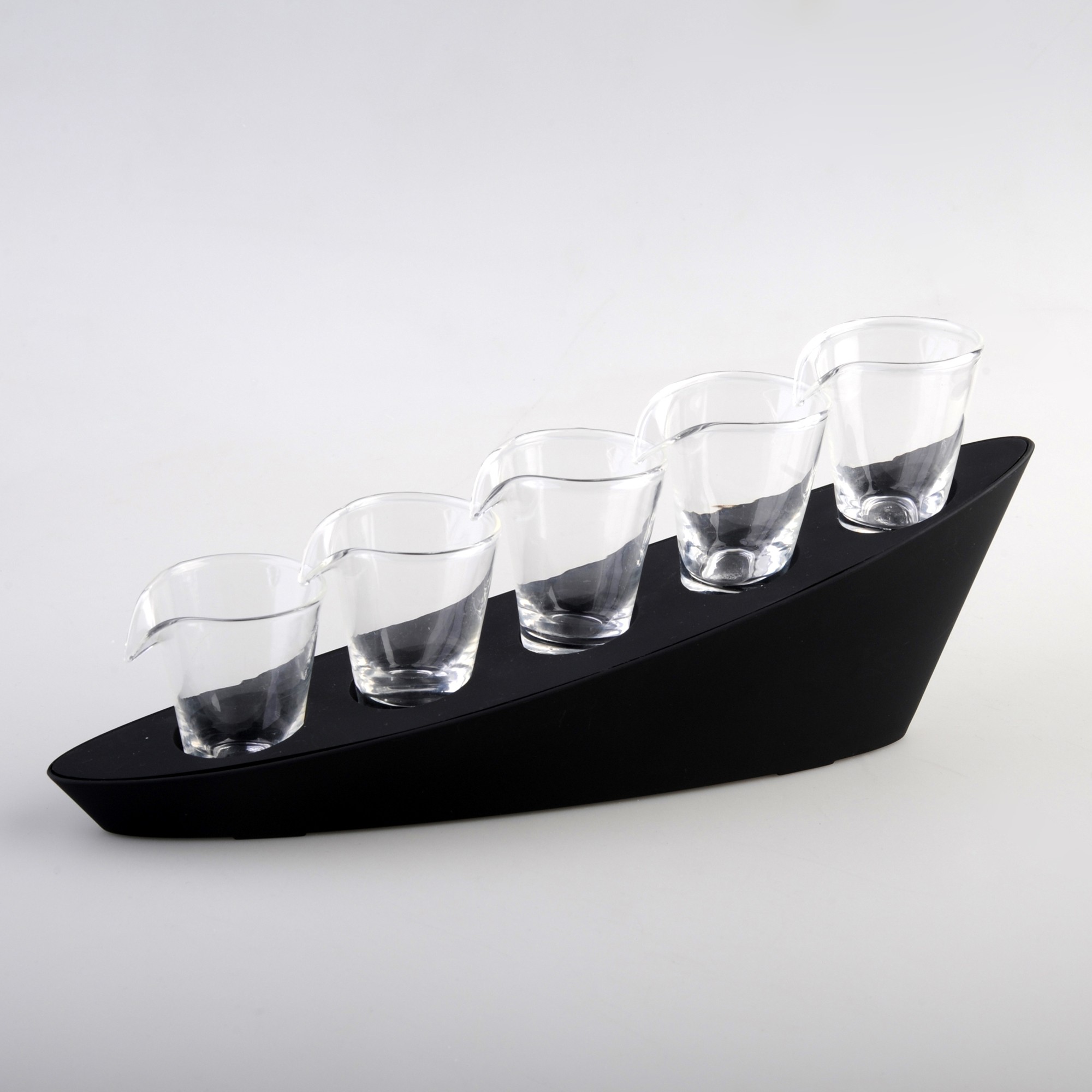 Les 5 verres shooter sont disposés comme des dominos à différentes hauteurs sur le socle à LEDs.
