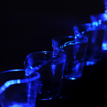 Les verres shooter de la cascade lumineuse sont lavables au lave-vaisselle.