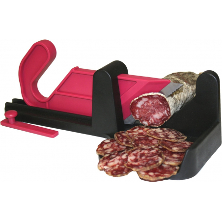 La guillotine à saucisson rouge est un outil simple pour couper du saucisson rapidement !