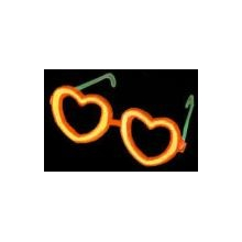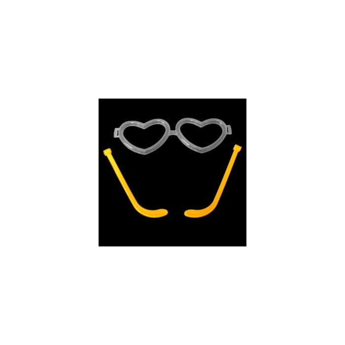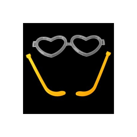 Une paire de lunette en forme de coeur avec deux branches et deux batonets fluorescents.