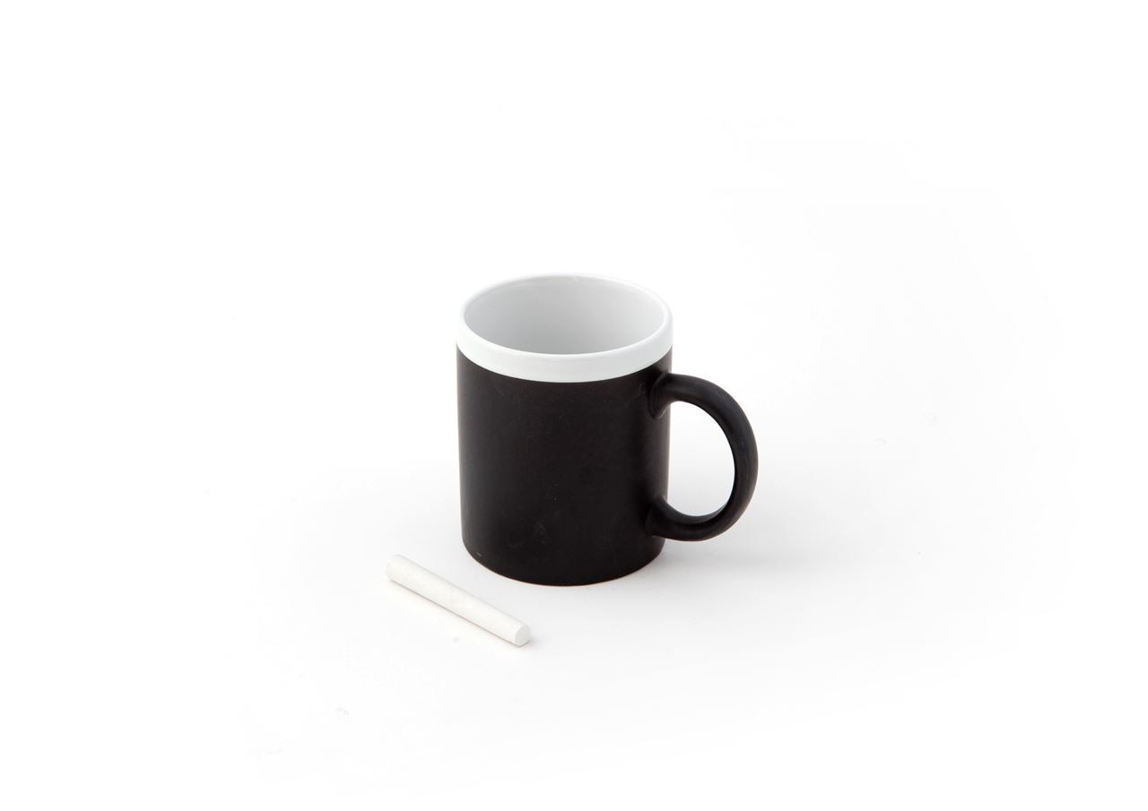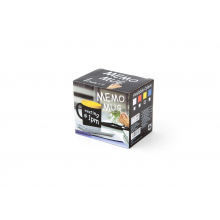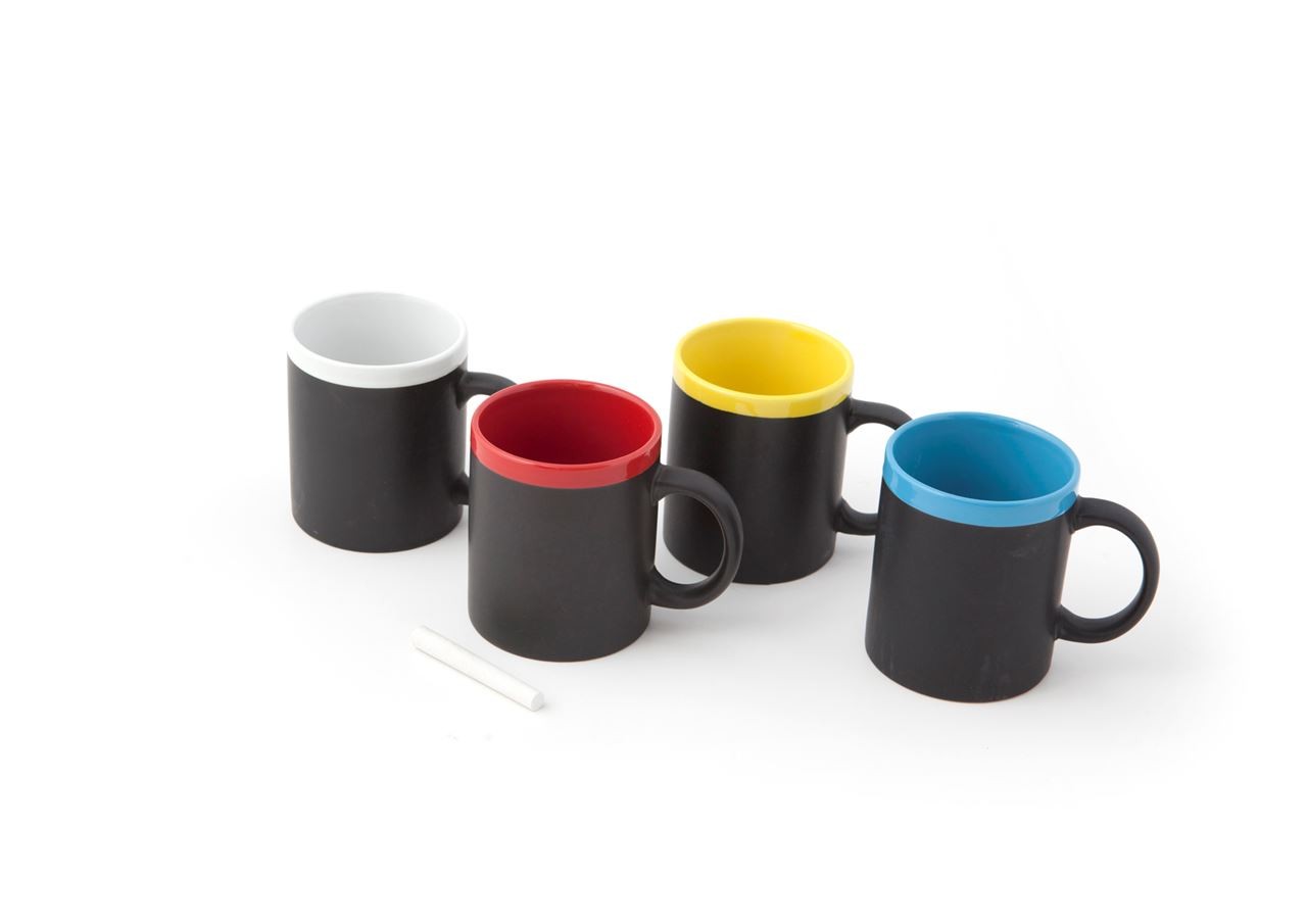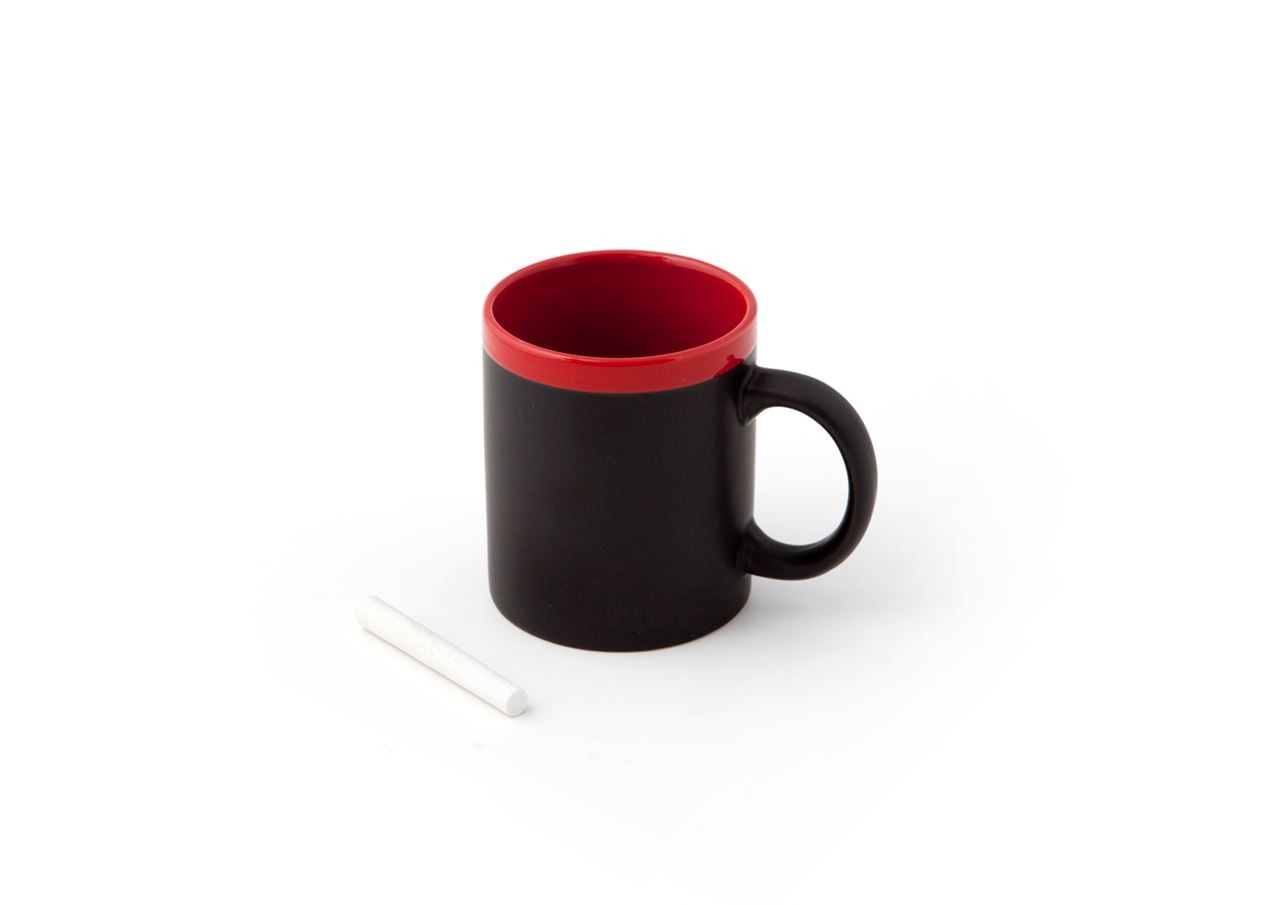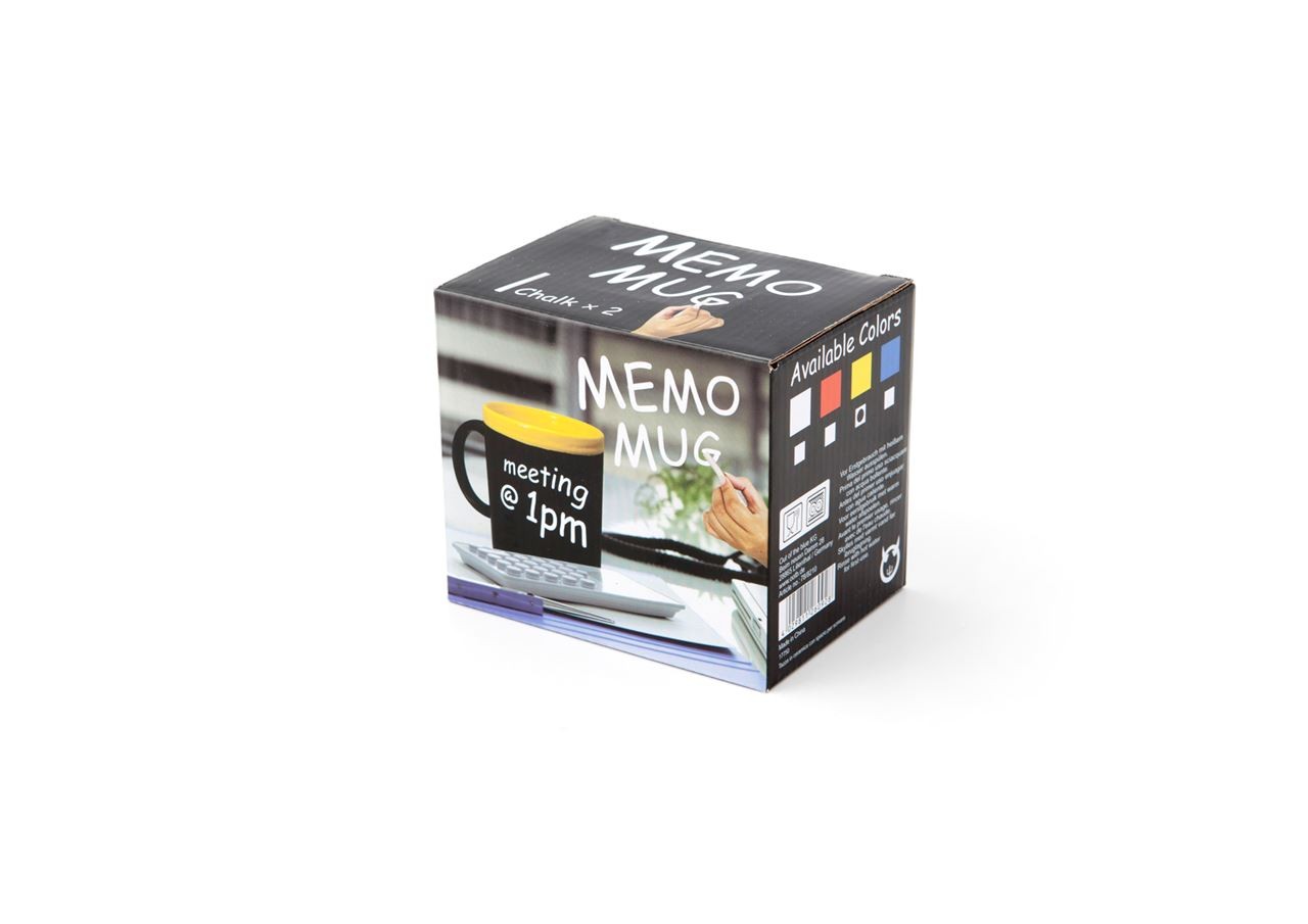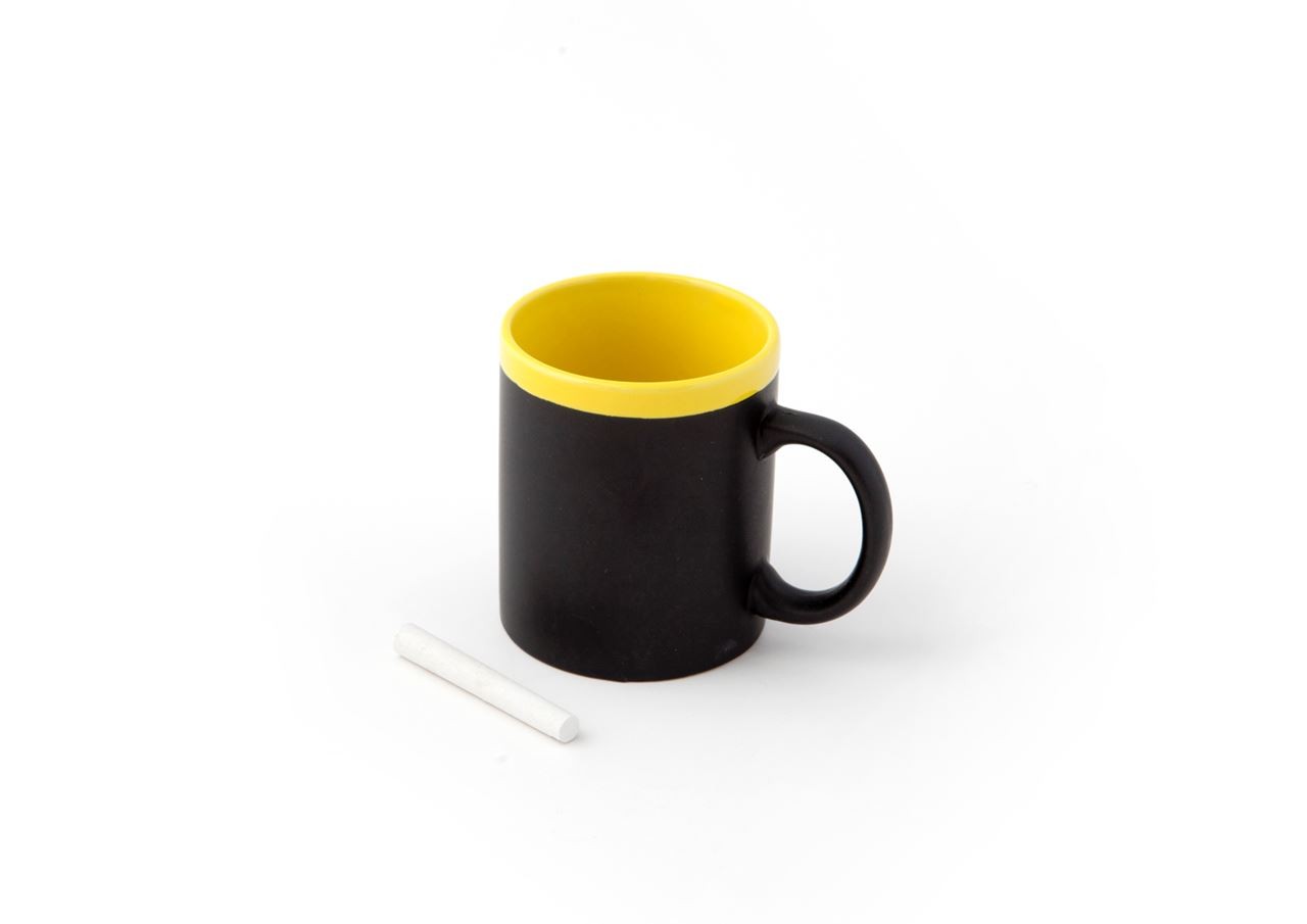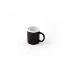 Le mémo Mug est une tasse avec surface tableau noir pour écrire des messages effaçables à la craie. Existe en blanc , rouge ou jaune (couleur aléatoire)