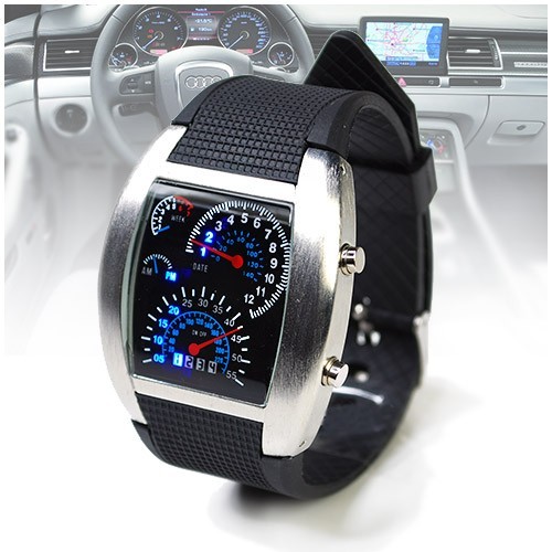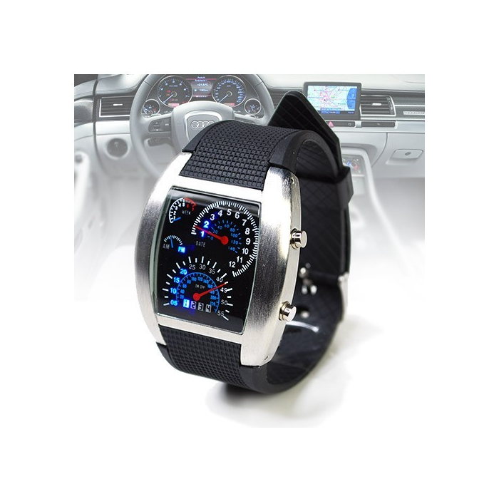 Nous vous proposons cette montre design compte tour de voiture.