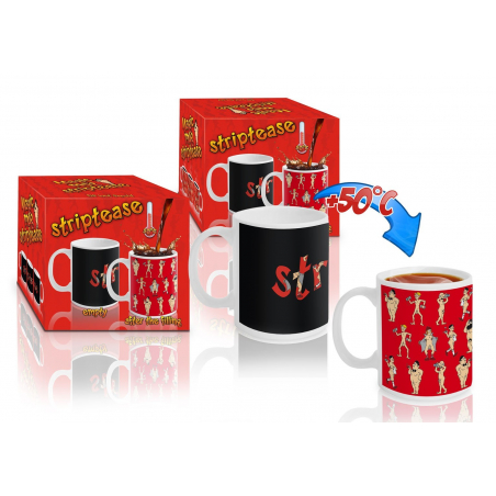 Le mug striptease pour femme est noir avec marqué striptease lorsqu'il est froid.