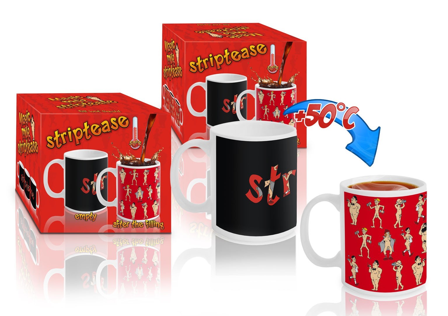 Un mug striptease pour femme original avec des hommes qui se déshabillent lorsque vous verser un liquide chaud à l'intérieur de la tasse.