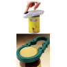 Placez l'ouvre boîte automatique sur la boîte de conserve, une seule pression sur le bouton suffit, l'ouvre boîte se met à tourner pour ouvrir la boîte de conserve.