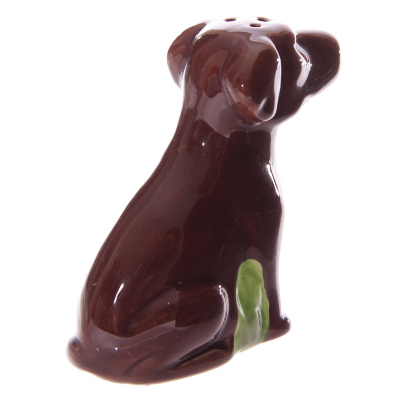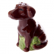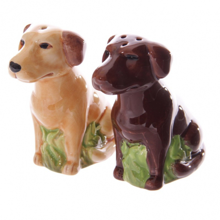 Lot d'une salière et d'une poivrière en forme de chien de la race labrador.