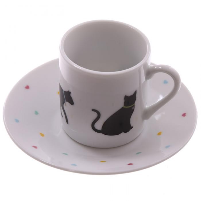 Vous aimez les animaux ? Avec ce set de 2 tasses à expresso au décor de chat et de coeur, vous pourrez boire votre café en compagnie de votre chat et lui déclarer votre amour...