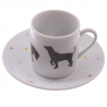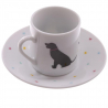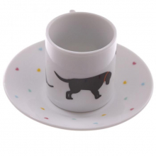 Ce set de 2 tasses à expresso avec sous-tasses a été designé par l'anglais Jack Evans. Il est présenté dans un bel écrin au décor de chien.