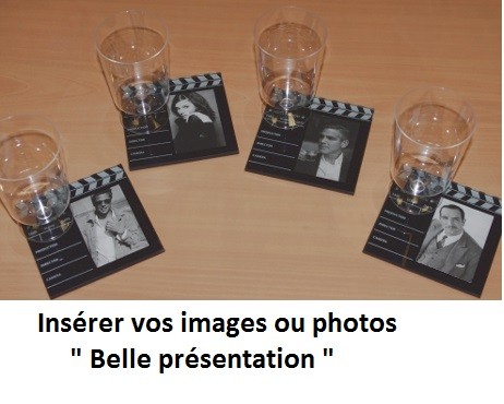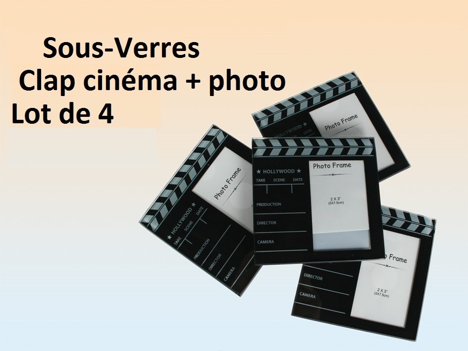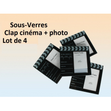 Set de 4 sous-verres clap de cinéma pour mettre photo.