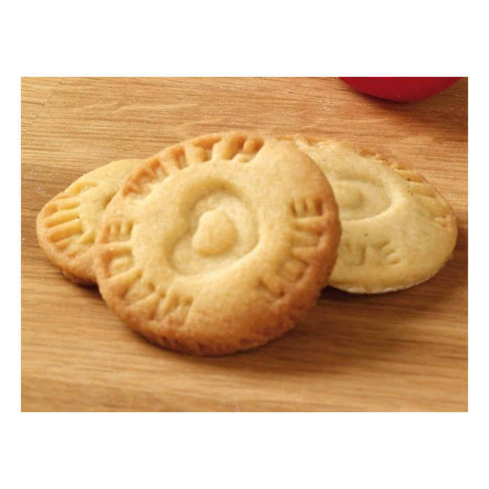 Personne ne pourra résister à vos délicieux biscuits marqués d'un délicieux message. Le lot de 3 tampons à cookies contient un manche en bois sur lequel vient se clipser un tampon en silicone alimentaire. Reste à appuyer sur votre pâte à biscuit crue pour marquer le message souhaité sur les gâteaux. Vous avez le choix entre 3 tampons à cookies pour marquer vos biscuits : un dessin de Coeur, "Made with Love" et "I love Biscuits". Les gourmands n'y résisteront pas longtemps... Bon appétit !