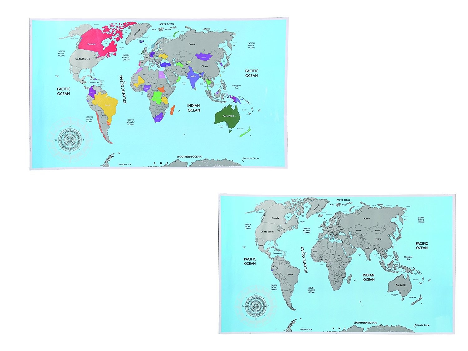 La carte à gratter du Monde vous permet de gratter les pays que vous avez déjà visités ! Poster horizontal de dimensions 88 x 52 cm