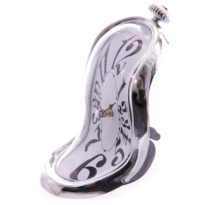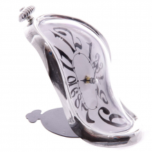 Horloge fondue Salvador Dali avec un cadre argenté à poser sur un bureau ou une étagère.