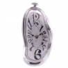 L'horloge fondue dispose des aiguilles et chiffres design sur le cadran blanc.