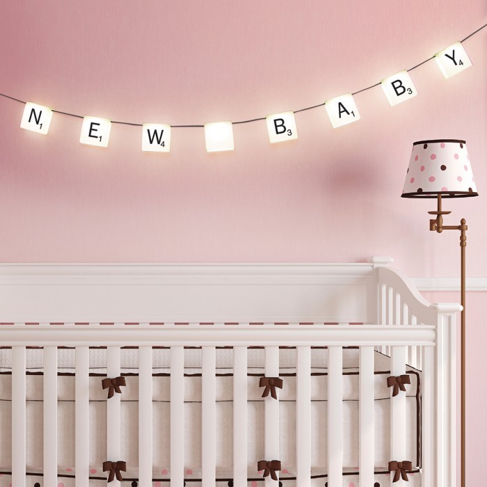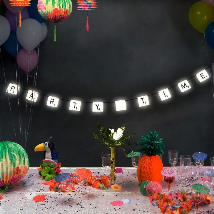 Une guirlande Scrabble avec des lettres lumineuses pour écrire un mot personnalisé, essayez de faire un mot compte triple avec cette lampe originale Scrabble !