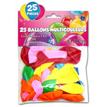 Le lot se compose de 25 ballons de baudruche multicolores.