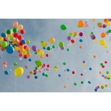 Gonflez les ballons multicolores avec de l'hélium pour mettre de la couleur au plafond ou organiser un lâché de ballons pour créer une multitude de couleurs dans les airs.