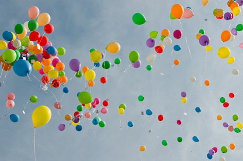 Les ballons multicolores sont de plusieurs couleurs assorties : bleu, orange, rouge, vert, jaune, rose...