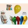 Les ballons sont de couleur jaune, vert, rouge, bleu et blanc.