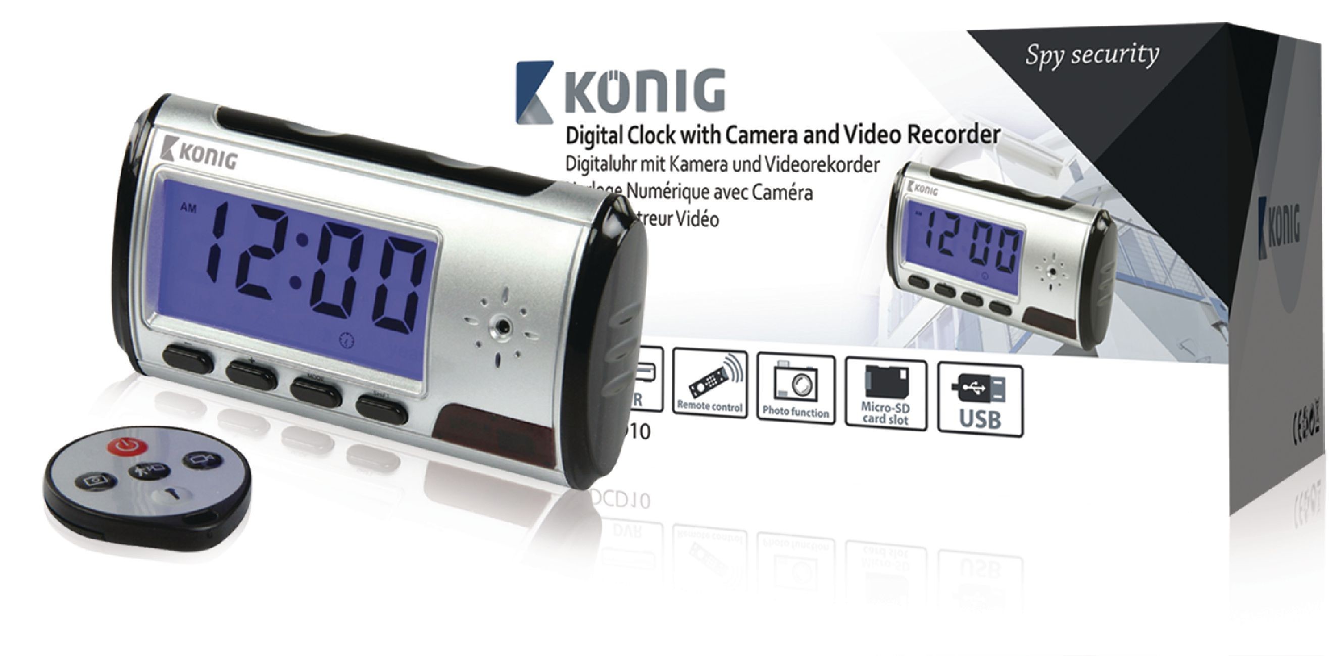 L'horloge numérique à poser dispose d'une caméra miniature avec un microphone à l'intérieur.
